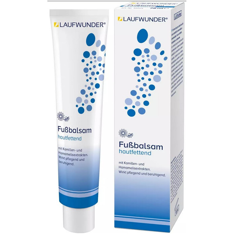 Laufwunder premasťujúci balzám na nohy je prípravok starostlivosti o nohy s obsahom extraktov z hamamelu (1%) a harmančeka (0,7%), ktoré majú na pokožku posilnujúci a upokojujúci účinok. Svojím zložením účinne hydratuje a premasťuje suchú pokožku, ktorá sa následne stane mäkkou a pružnou. Je obzvlášť vhodný na starostlivosť o nprmálnu až suchú pokožku.